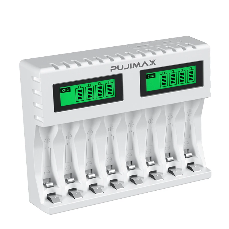 This smart battery charger is designed for efficient and reliable charging of AA and AAA Ni-MH rechargeable batteries. An LED display clearly shows charging status and battery progress at a glance. Independent charging slots allow each battery to charge separately for better performance and safety. Intelligent charging technology helps prevent overcharging and extends battery life. The compact design makes it easy to use at home, in the office, or while traveling. Simple plug-and-play operation ensures convenience for everyday users. Durable construction provides stable and long-lasting performance. This charger is suitable for remote controls, toys, flashlights, and other battery-powered devices. Energy-efficient charging helps reduce power waste and costs. This smart charger from PUJIMAX is a practical solution for managing rechargeable batteries efficiently.