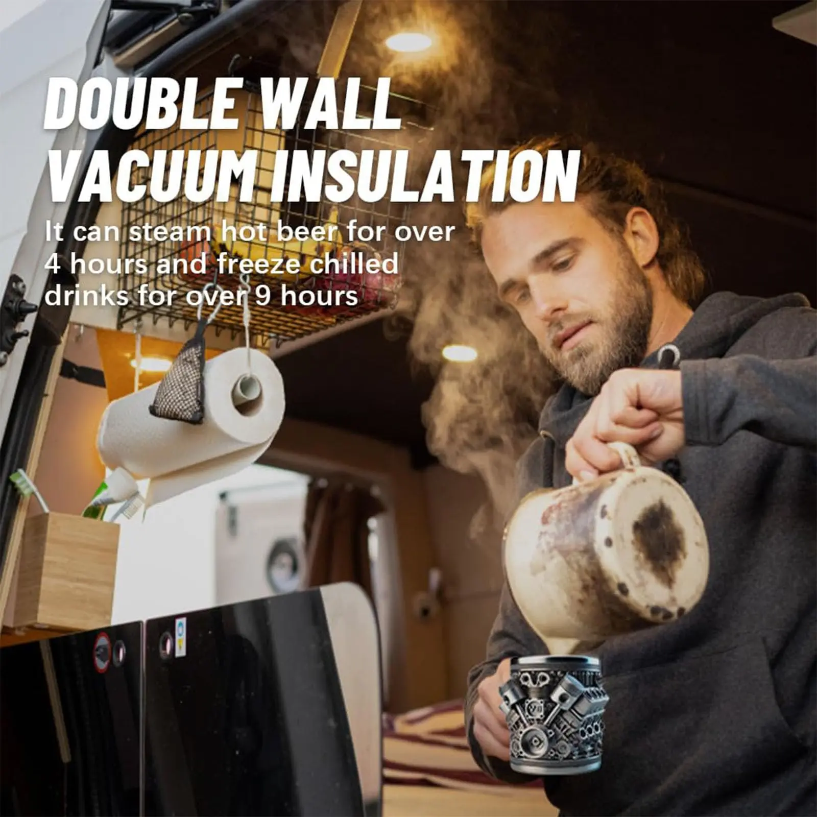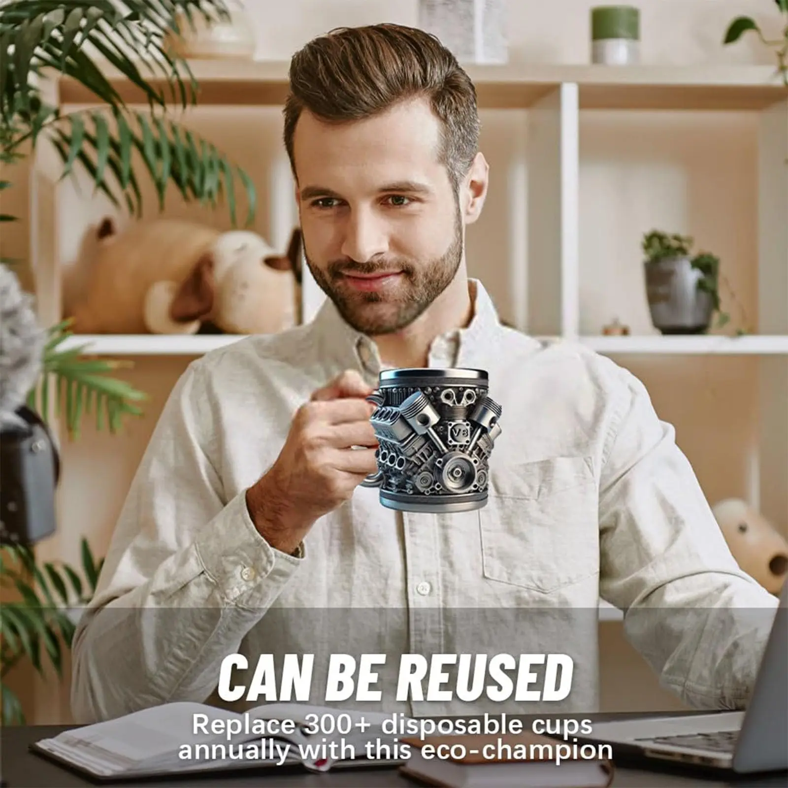 Rev up your drinkware collection with this creative V8 engine–style stainless steel coffee mug. Designed with a detailed resin engine exterior, this cup delivers a bold, mechanical look that car enthusiasts will love. The stainless steel interior is durable, easy to clean, and suitable for hot or cold beverages like coffee, wine, or water. Its solid build and comfortable grip make it both practical and eye-catching for home, office, or garage use. A fun and unique gift for mechanics, car lovers, and anyone who enjoys automotive-inspired accessories.