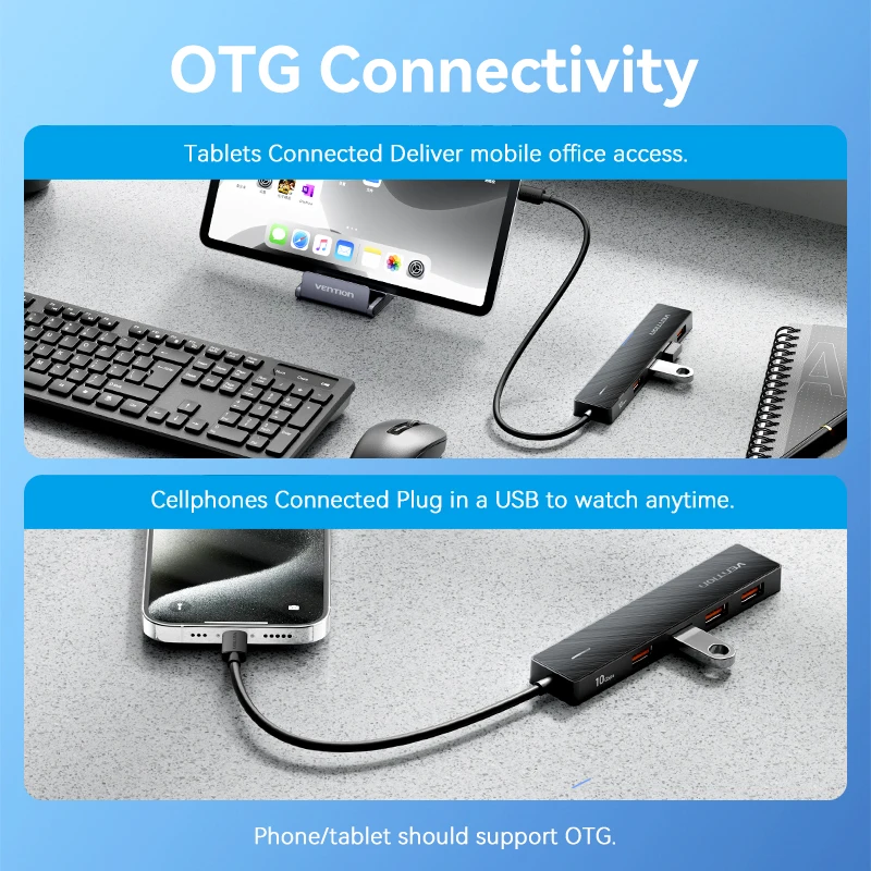 The Vention 5-port USB 3.2 Gen2 hub is designed to expand your laptop or desktop connectivity with high-speed data transfer. Supporting up to 10Gbps, it allows quick and efficient file transfers between devices. Compatible with USB-A and USB-C ports, it works seamlessly with MacBook, iPad, PCs, and other laptops. Its compact and portable design makes it easy to carry and use anywhere. The hub supports multiple devices simultaneously, including drives, keyboards, mice, and more. Durable construction ensures long-lasting performance and stable connections. Plug-and-play functionality requires no additional drivers, making setup effortless. Ideal for work, study, or entertainment, it enhances productivity with expanded connectivity. Sleek and minimalist design complements modern devices and desks. This multiport USB hub is a practical and efficient solution for tech enthusiasts and professionals alike.